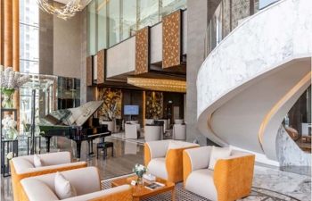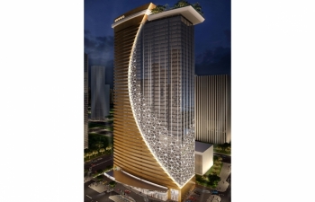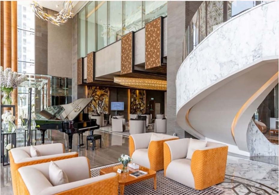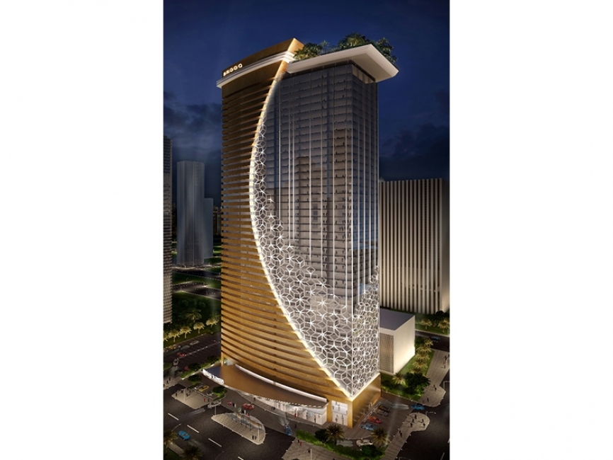 The building comprises 43 floors with a built-up area of 46,543m², providing 433 luxurious suites all-day dining restaurant, ballroom, roof-top